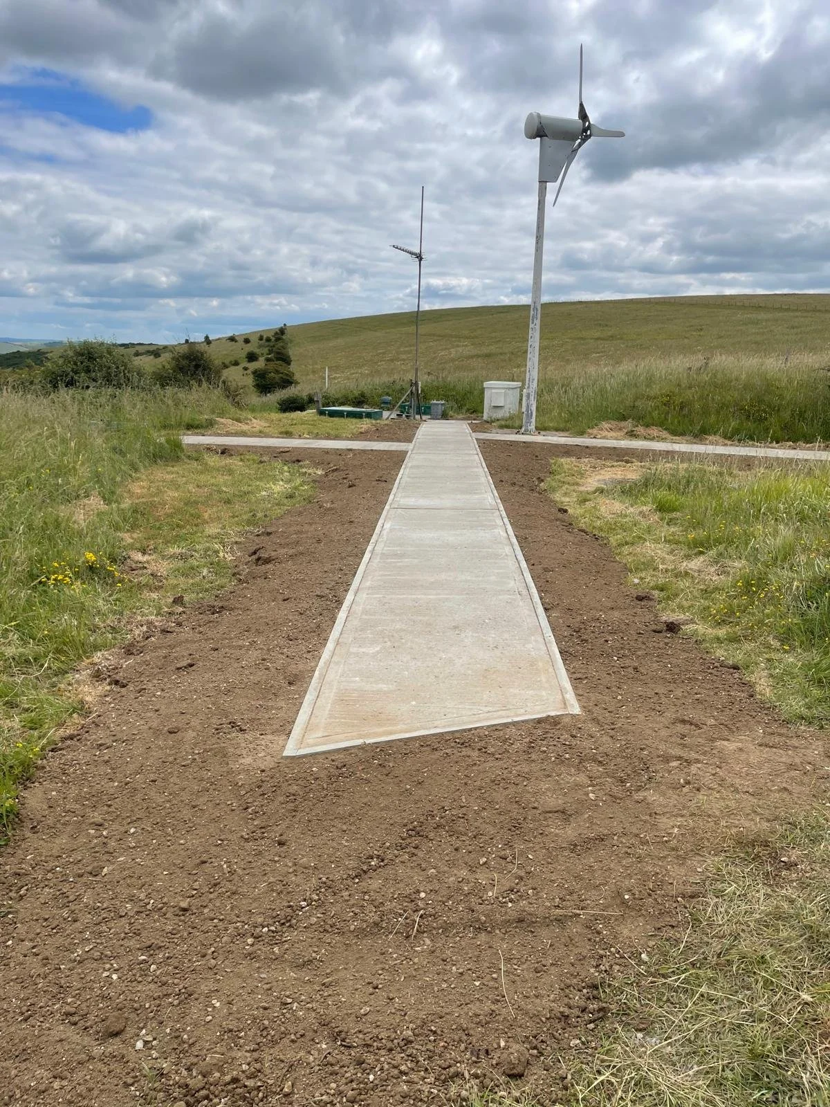 SFH Maintenance returned to a site previously worked on in January 2024 (without torrential rain and wind this time) to install a concrete footpath, steps and GRP handrail. The path was marked out and then dug by hand, kerbs were placed along the edging, followed by a weed resistant geo-textile, hardcore and rebar. Due to the change in weather and temperature, expansion joints were added along the concrete path to allow movement and to avoid cracking. We then returned four weeks later to install a double-sided GRP handrail to the steps, once the concreted had hardened.